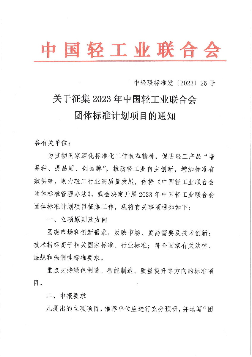 关于征集2023年bv伟德国际体育1946团体标准计划项目的通知