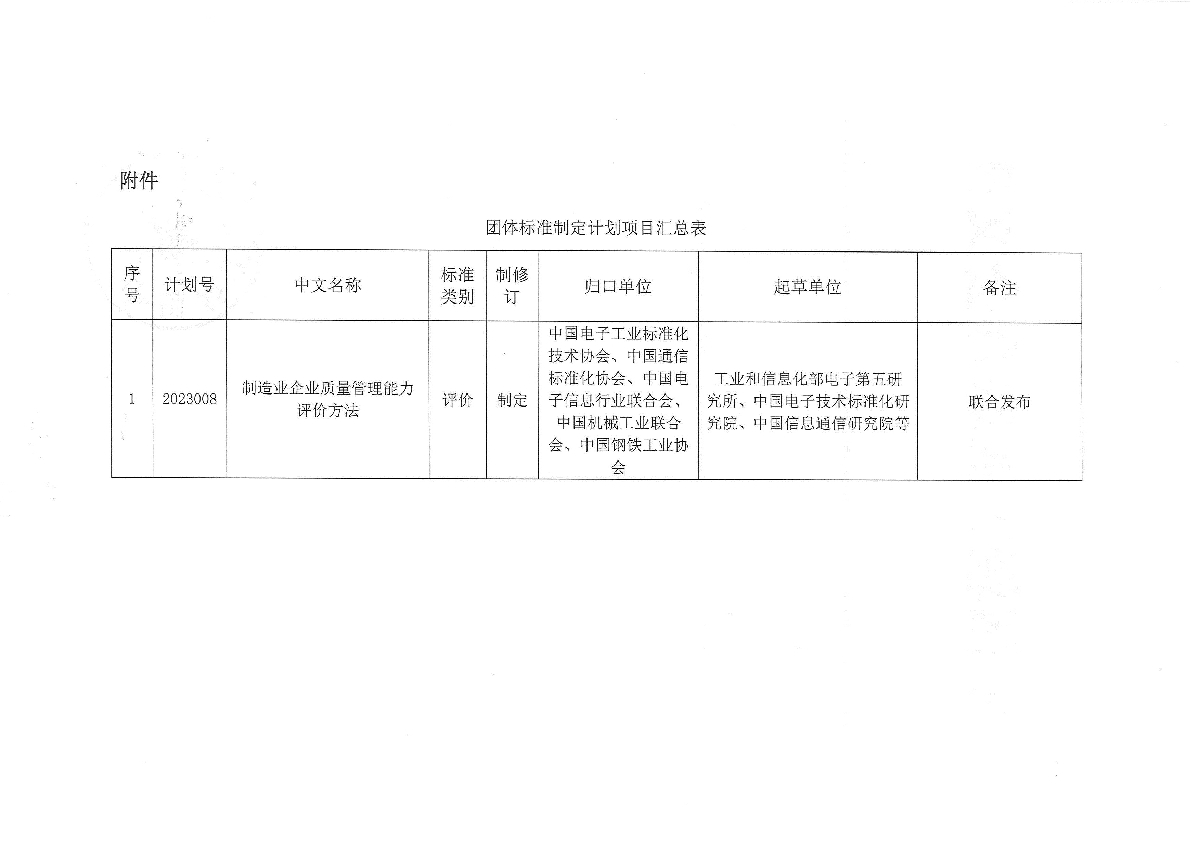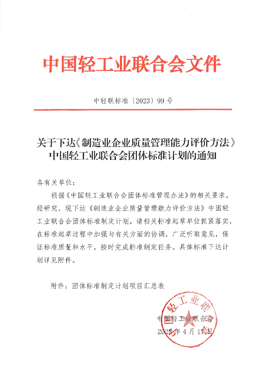 关于下达《制造业企业质量管理能力评价方法》bv伟德国际体育1946团体标准计划的通知