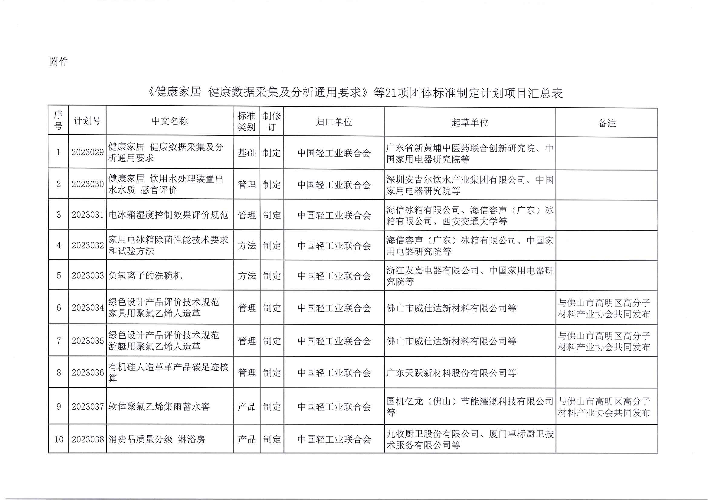 关于下达《健康家居 健康数据采集及分析通用条件》等21项bv伟德国际体育1946团体标准计划的通知