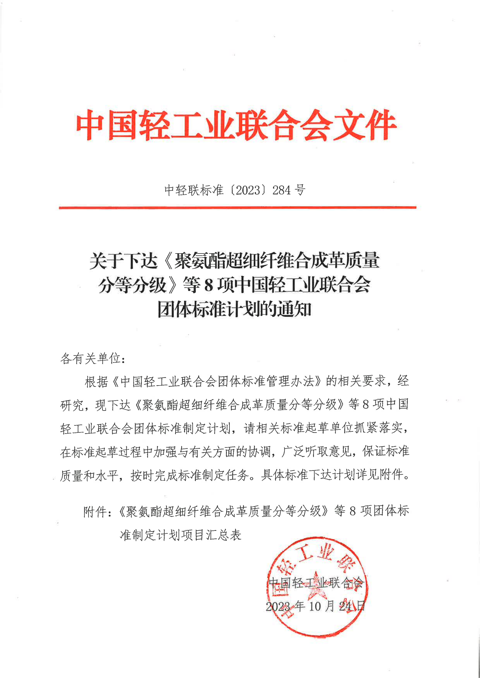 关于下达《聚氨酯超细纤维合成革质量分等分级》等8项bv伟德国际体育1946团体标准计划的通知