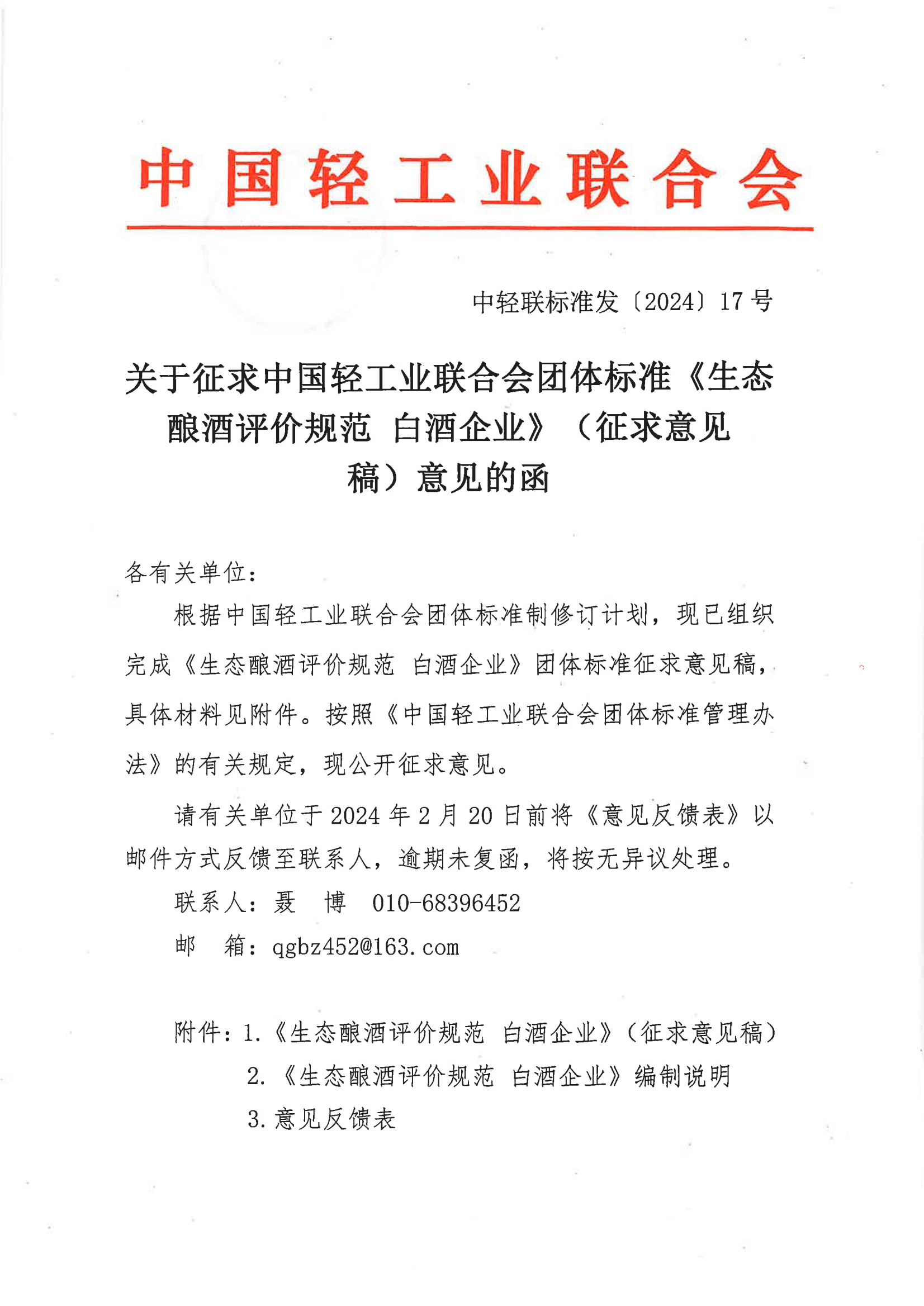 关于征求bv伟德国际体育1946团体标准《生态酿酒评价规范 白酒企业》(征求意见稿)意见的函