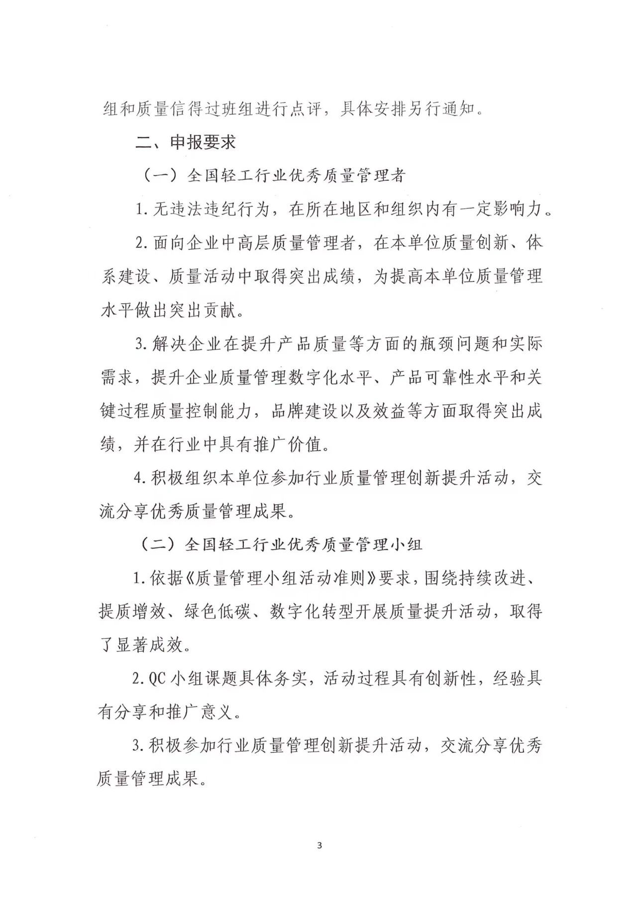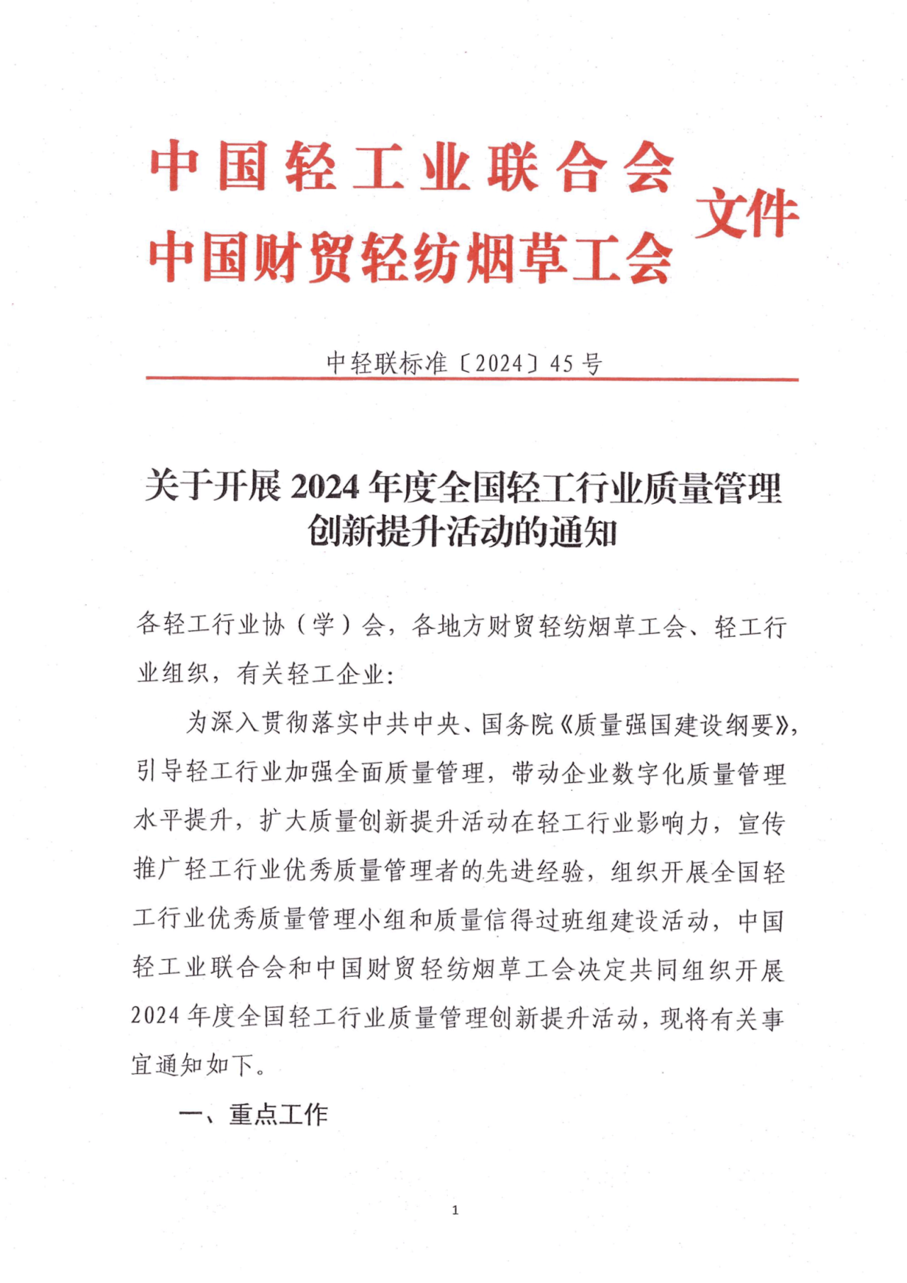 关于开展2024年度全国轻工行业质量管理创新提升活动的通知