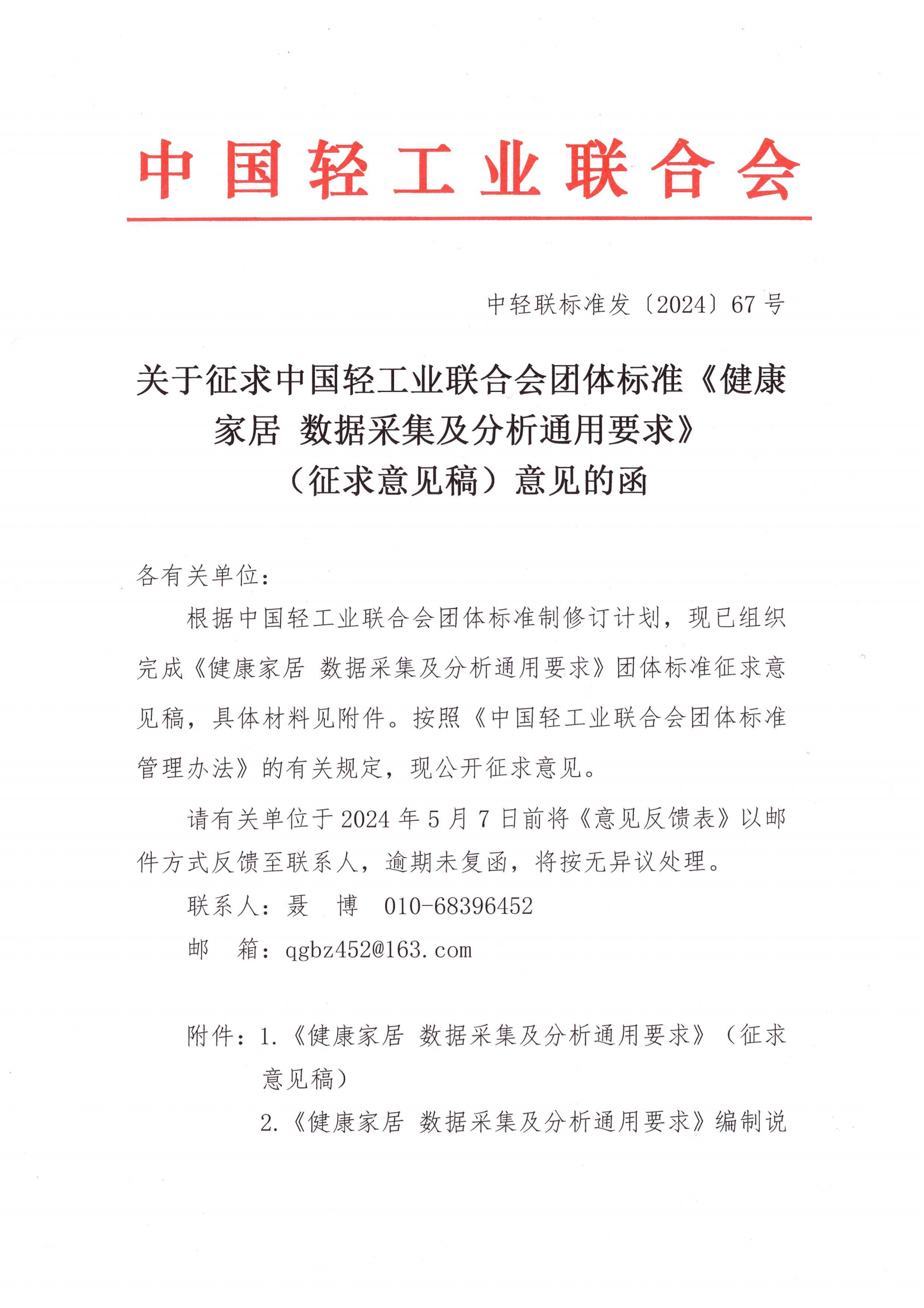 关于征求bv伟德国际体育1946团体标准《健康家居 数据采集及分析通用要求》(征求意见稿)意见的函