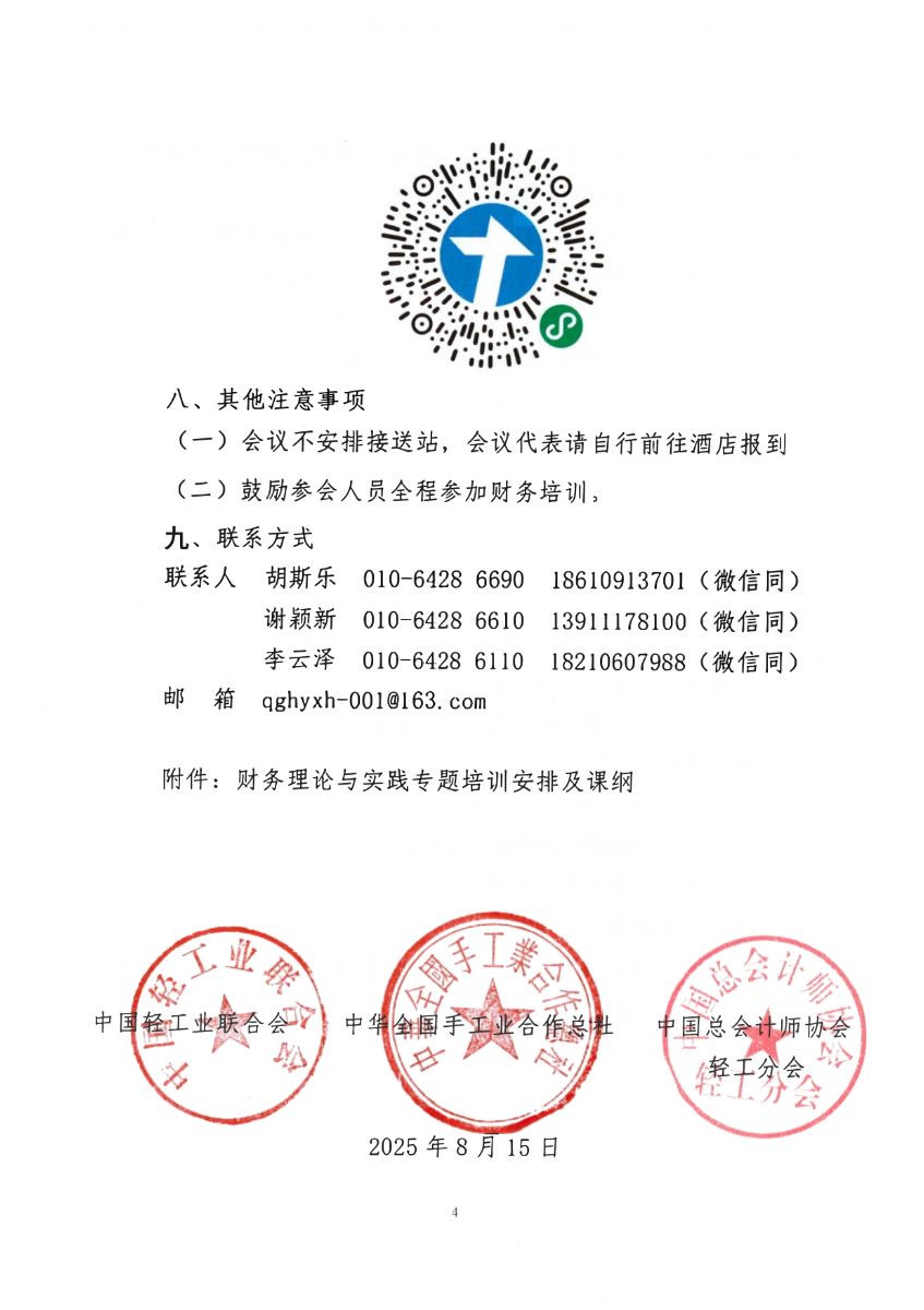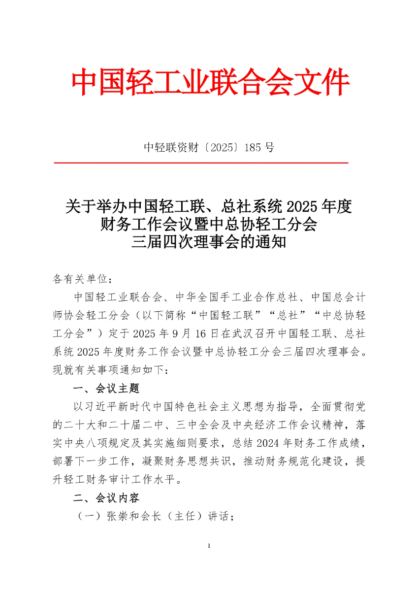 关于举办中国轻工联、总社系统2025年度财务工作会议暨中总协轻工分会三届四次理事会的通知