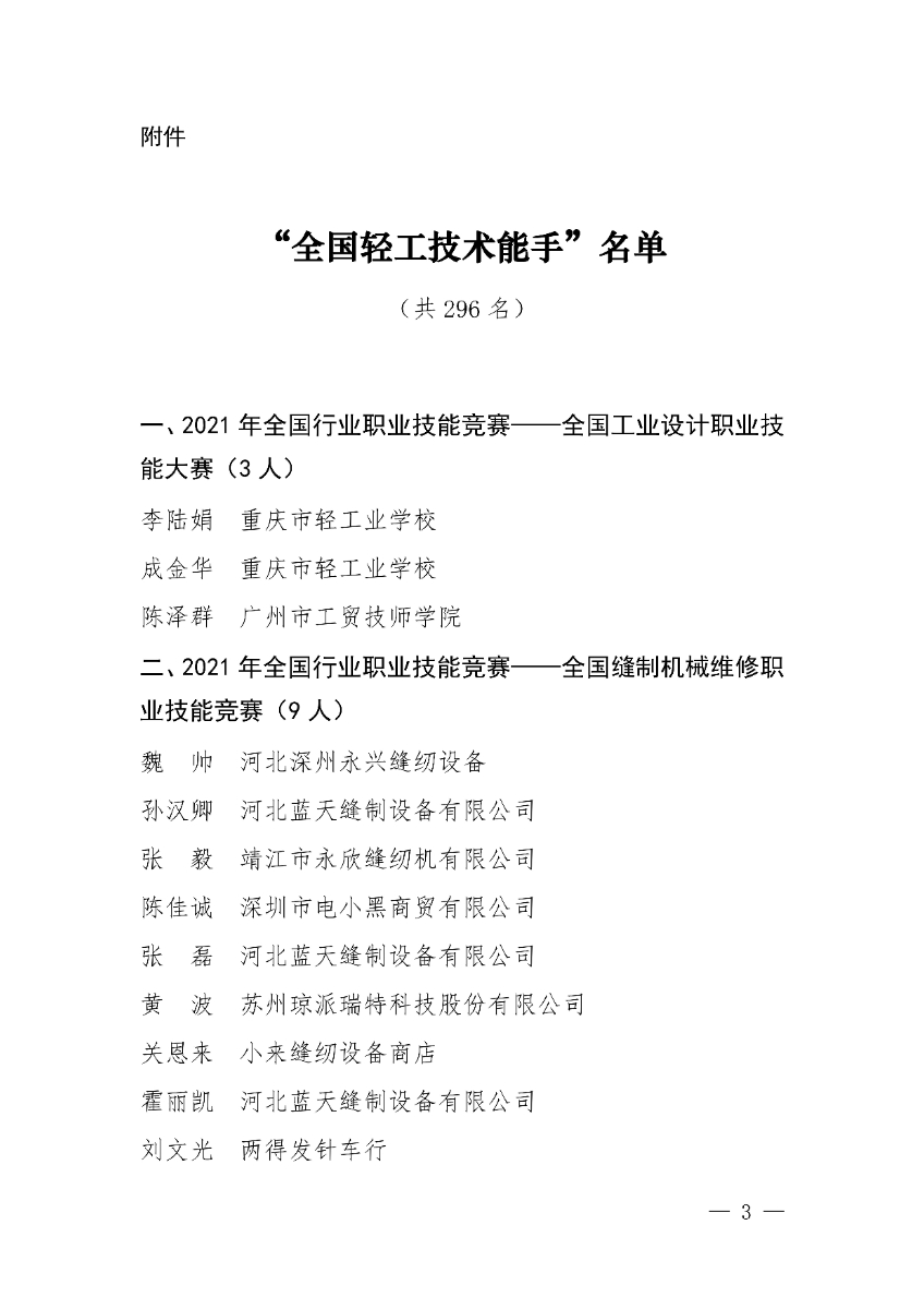 关于授予李陆娟等296名同志“全国轻工技术能手”荣誉称号的决定